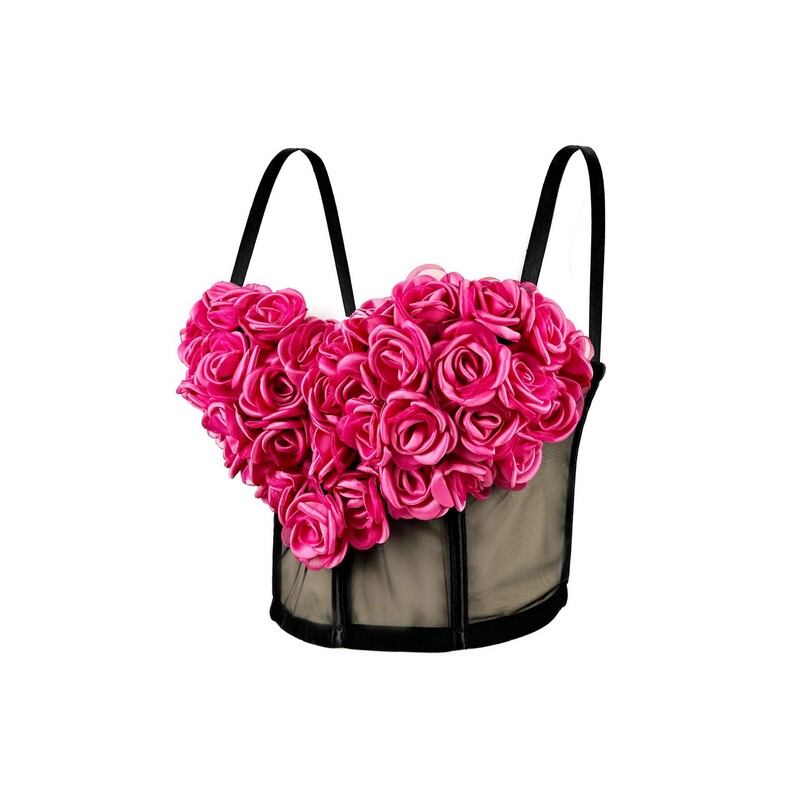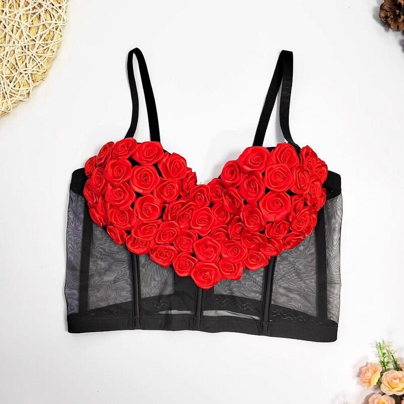 ハート型立体薔薇モチーフブラトップ S00163