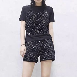 スパンコール装飾のトップス&ショートパンツセットアップです。