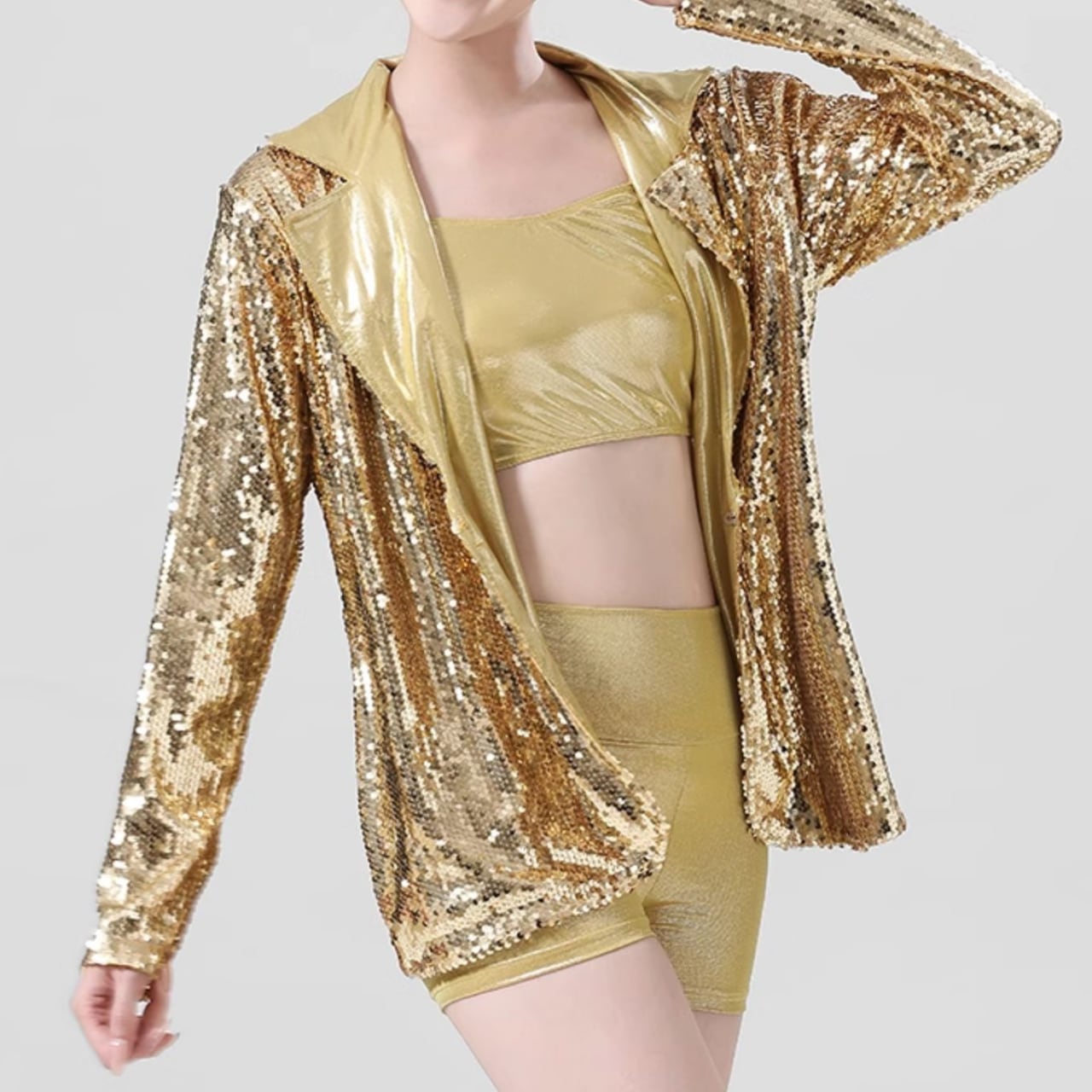 スパンコールオープンフロントダンスジャケット 2色 S00316