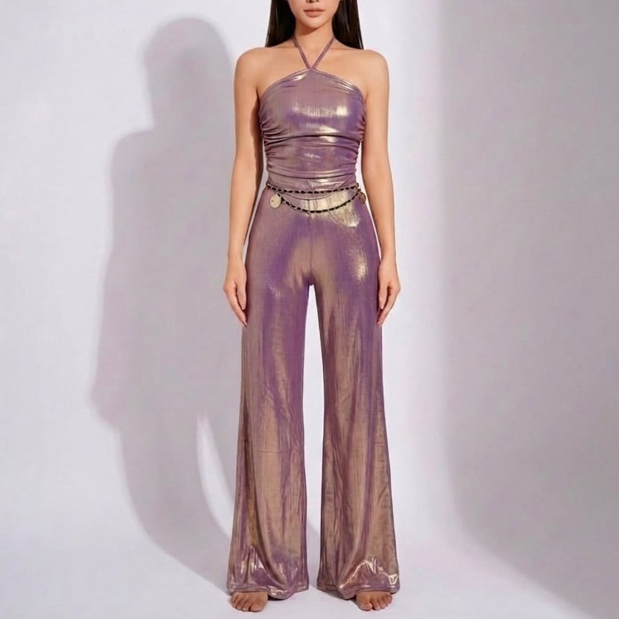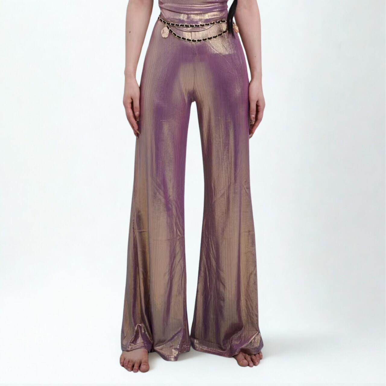 ピンクゴールドメタリックハイウエストフレアパンツ S00334