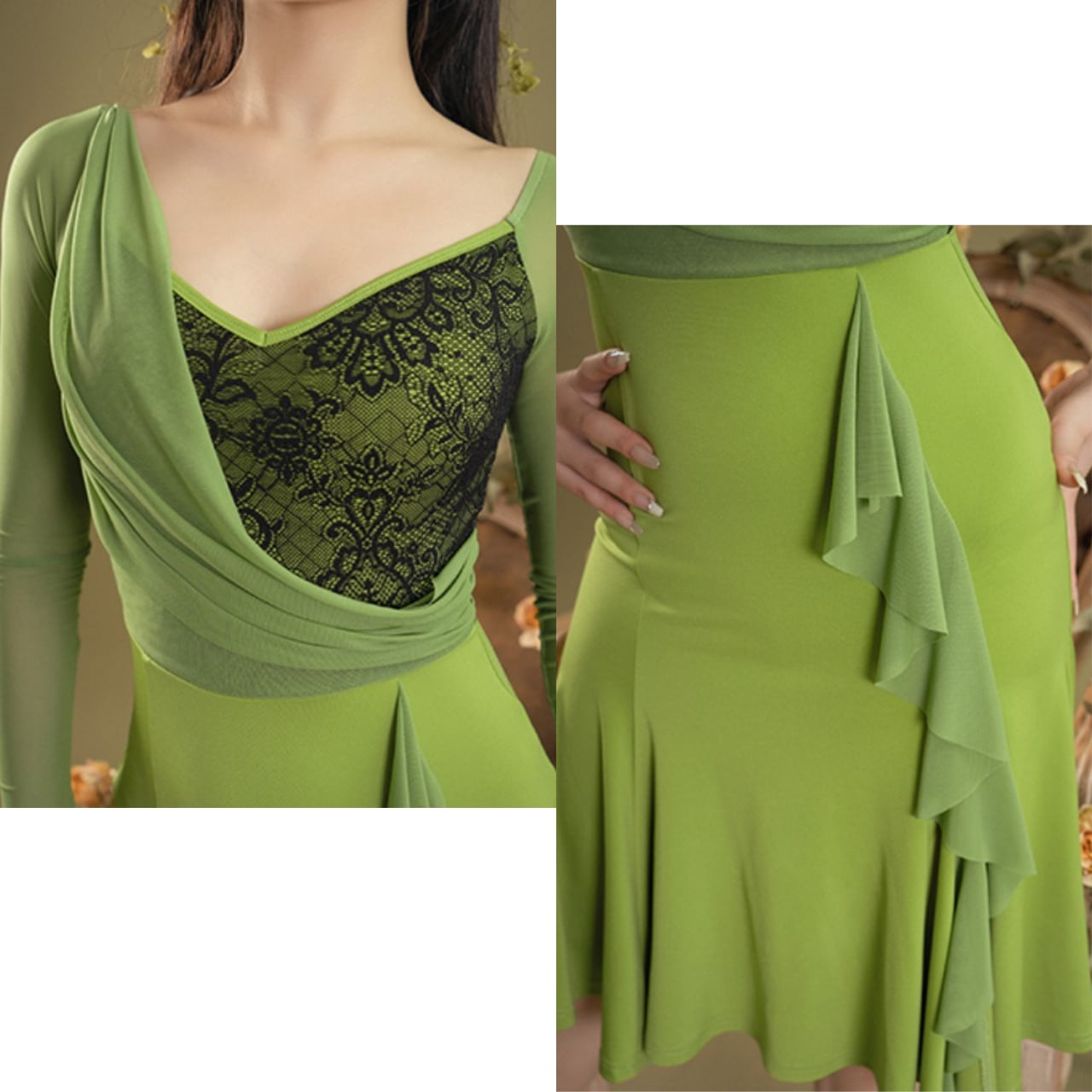 フレアスカートは、動きに合わせて美しく揺れ動き、