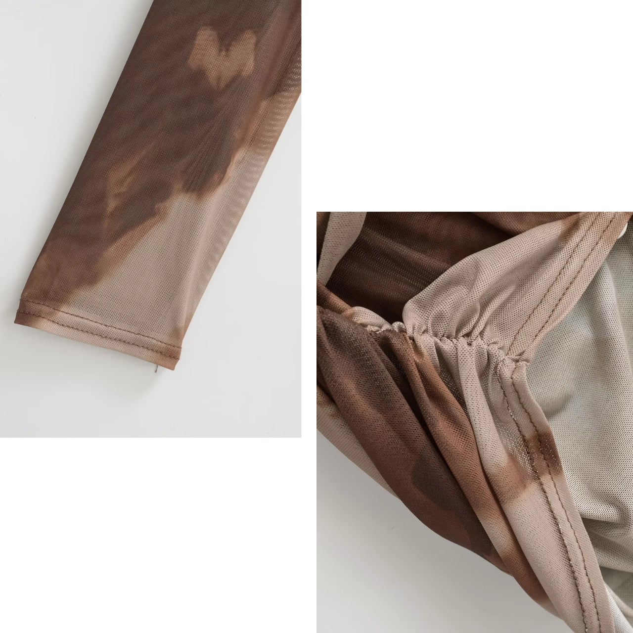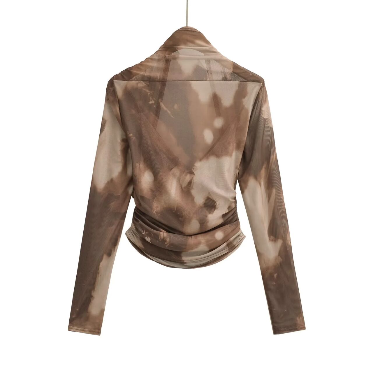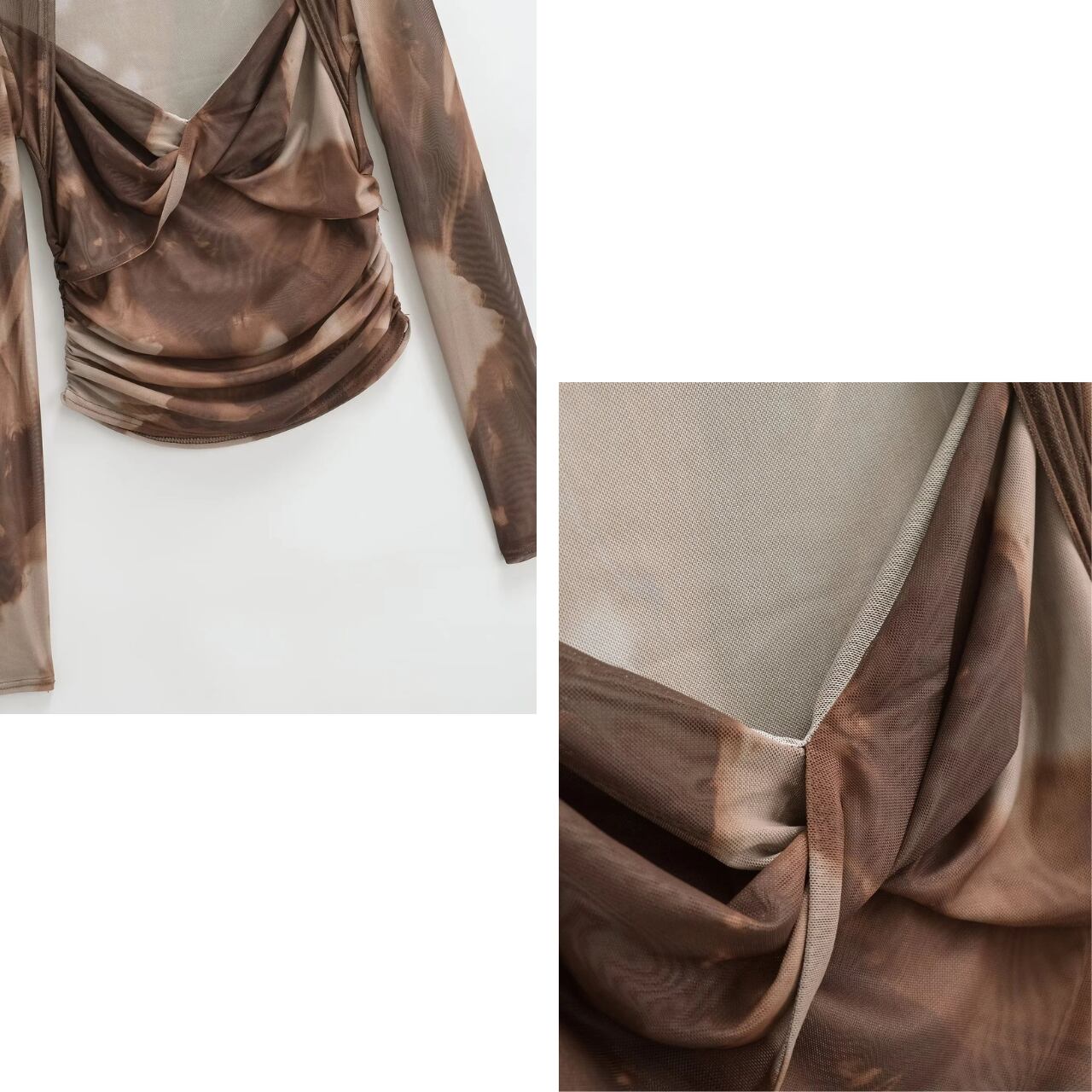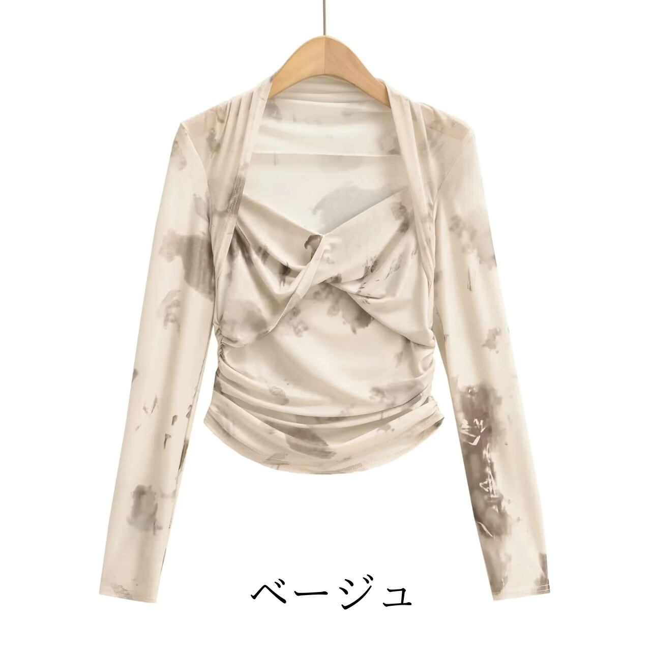 シースルーサイドプリーツデザイン長袖トップス S00350