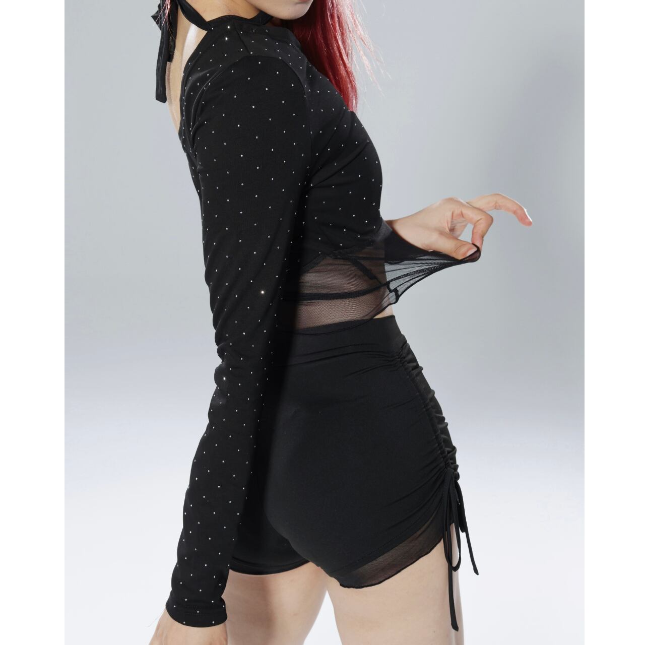 アシンメトリーなデザインが目を引くダンス衣装にぴったりなセットアップです。