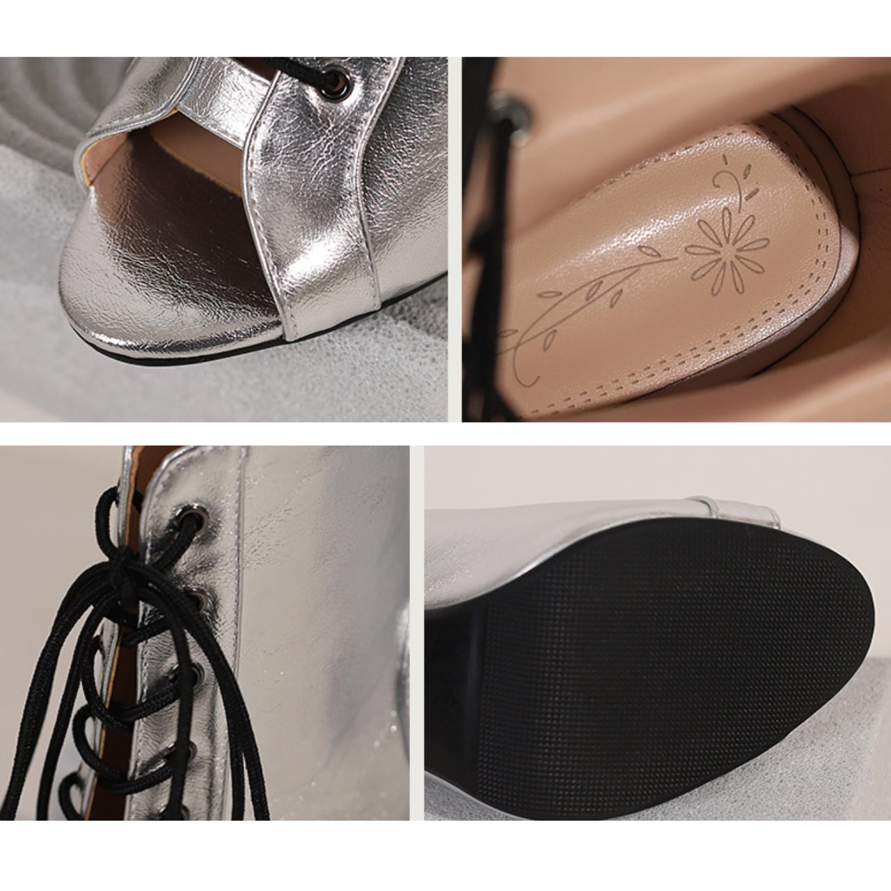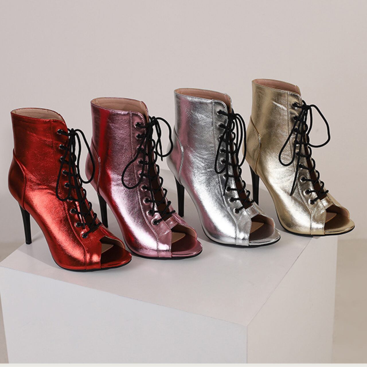 レースアップオープントゥハイヒールメタリックカラーダンスシューズ 4色 S00376