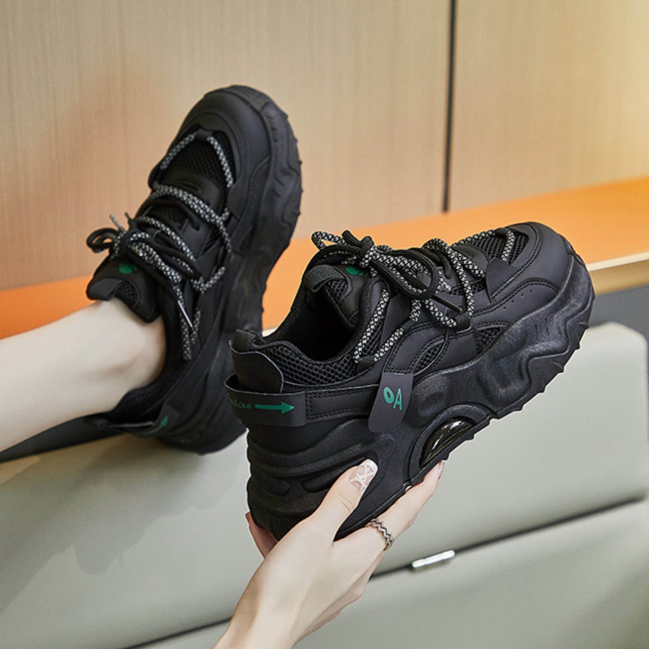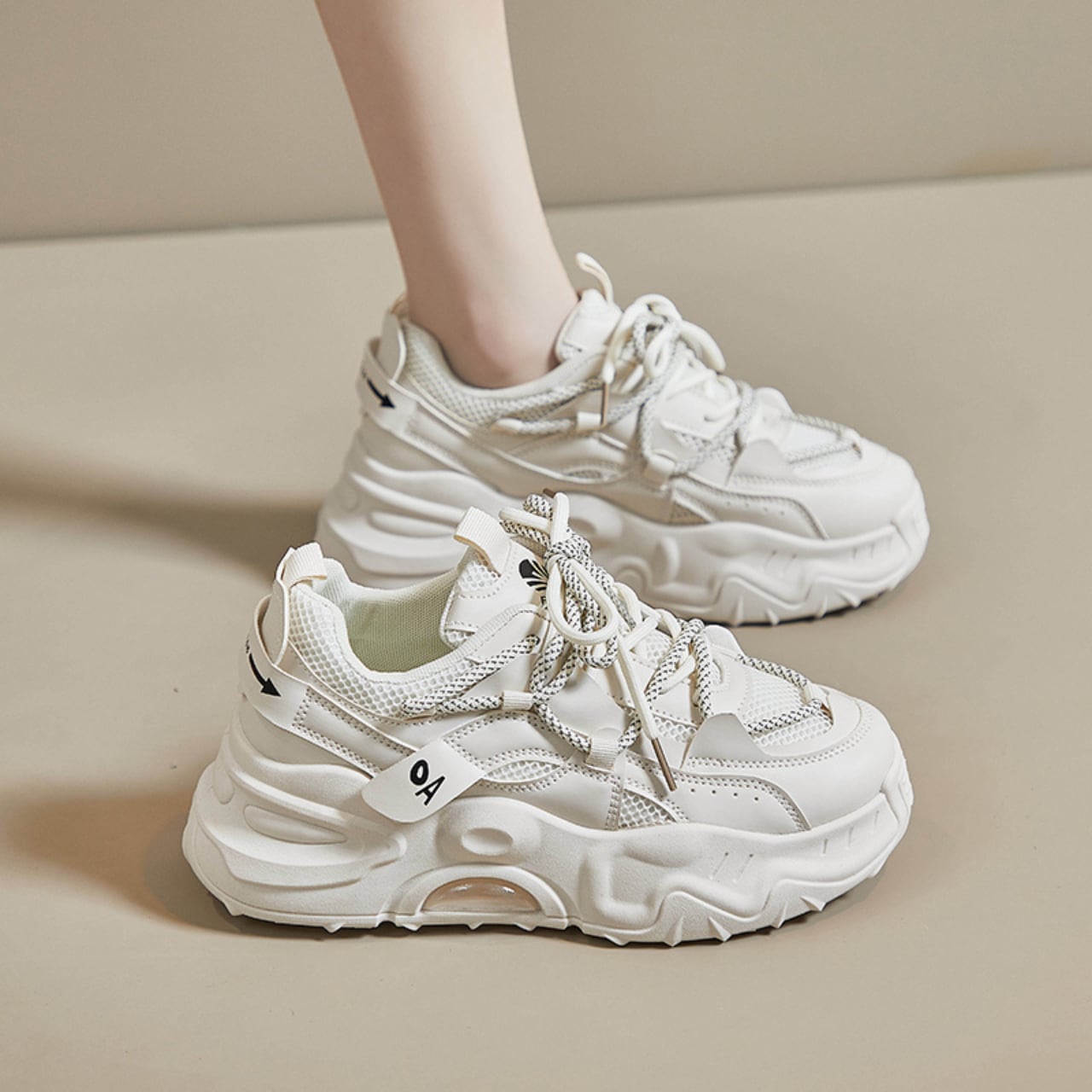 足元に存在感を生むモダンな厚底デザイン。
