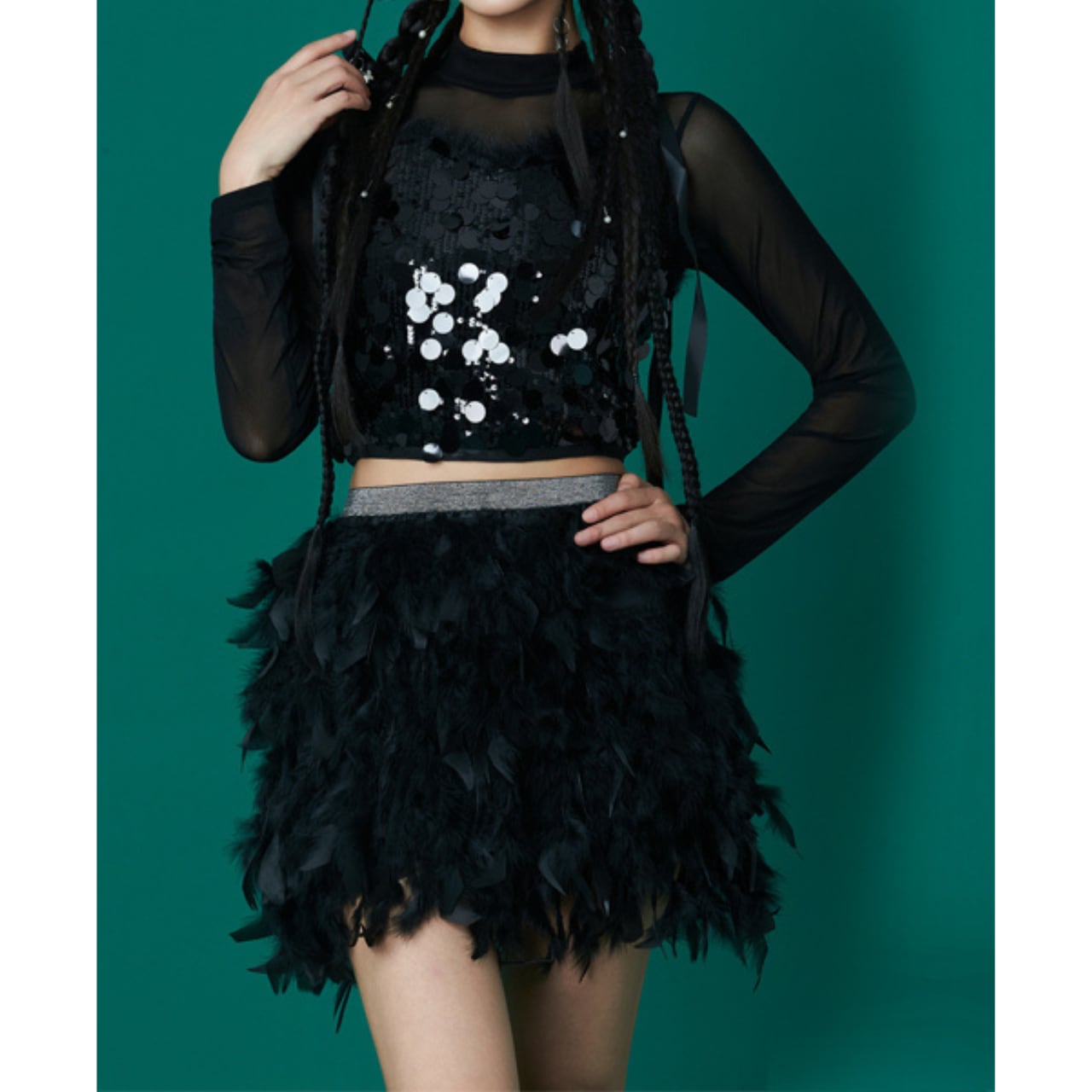 トップス・シアー長袖・フェザースカートの3点が一度に揃うから、届いてすぐにコーデが完成!