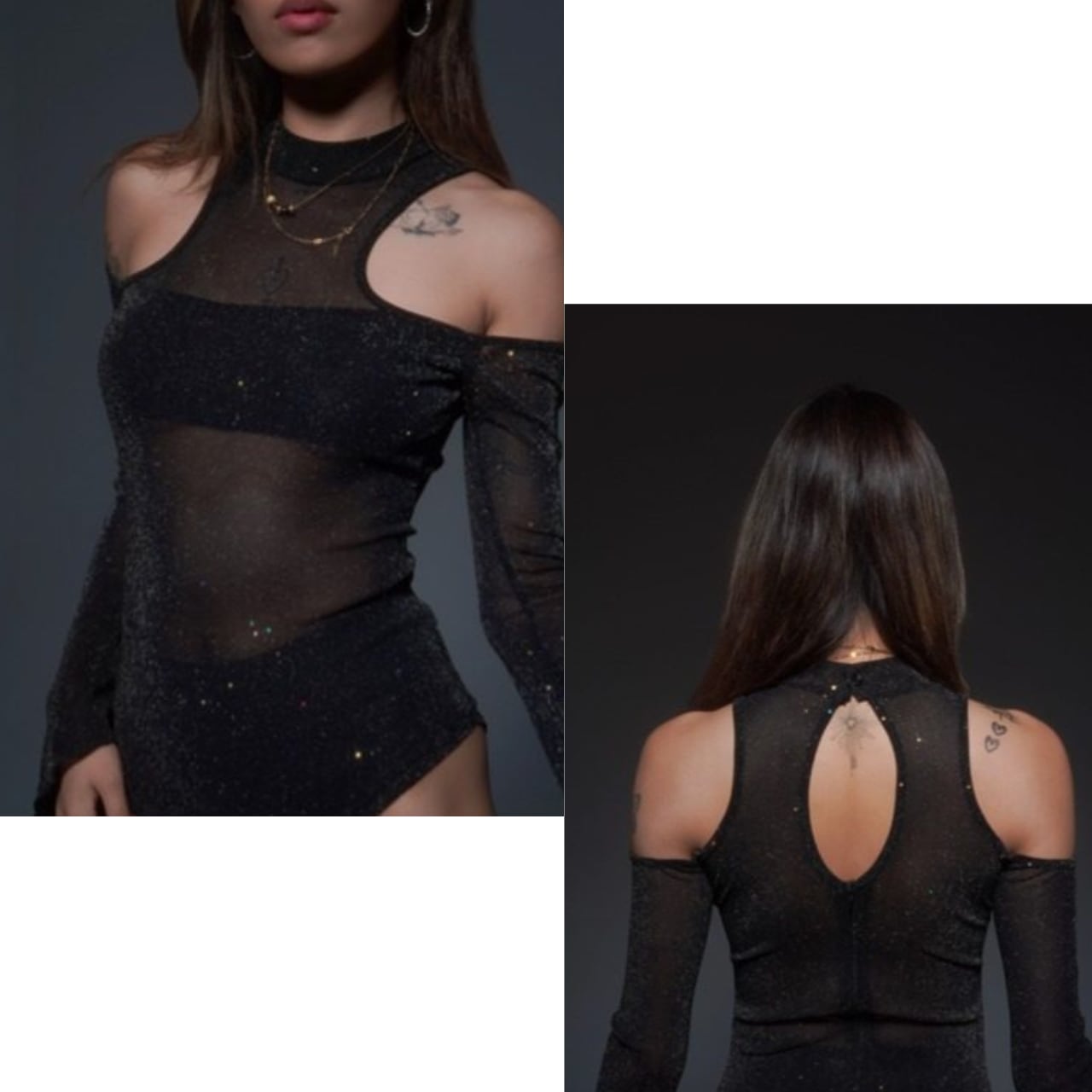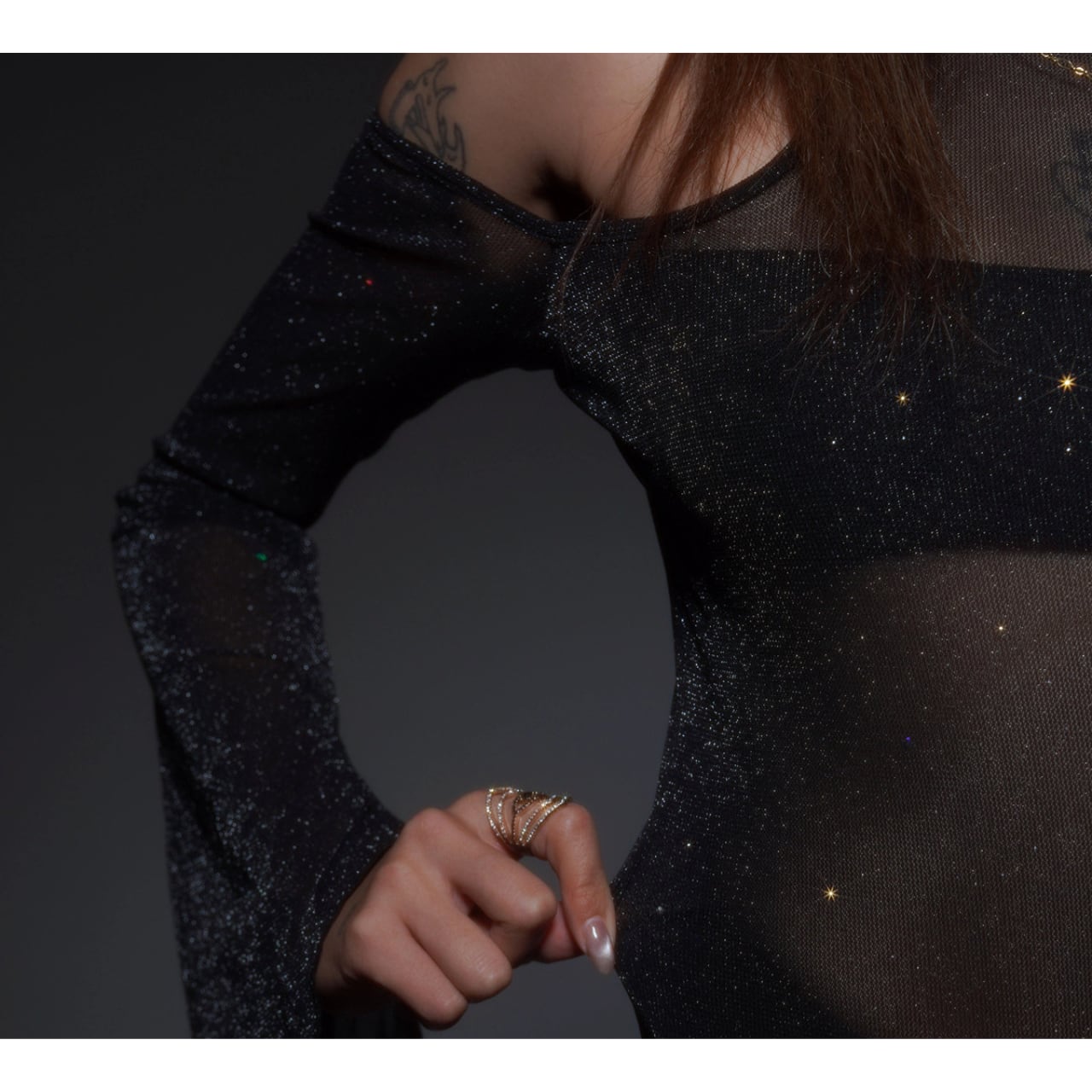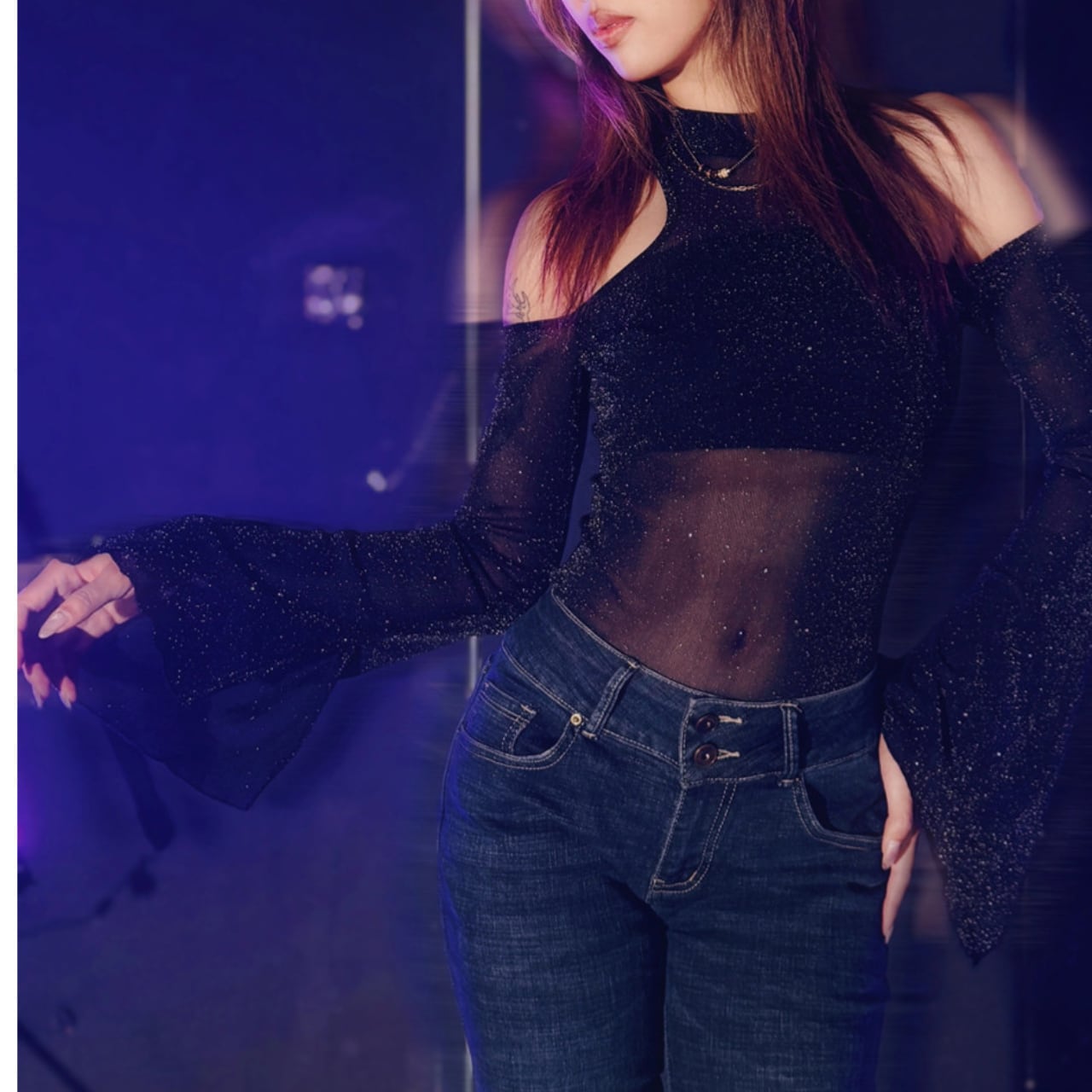 長袖なので、程よい肌見せで上品な印象を与えます。