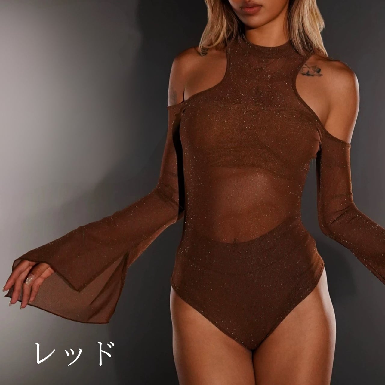 ショルダーカットアウトデザインレオタード 3色 S00486