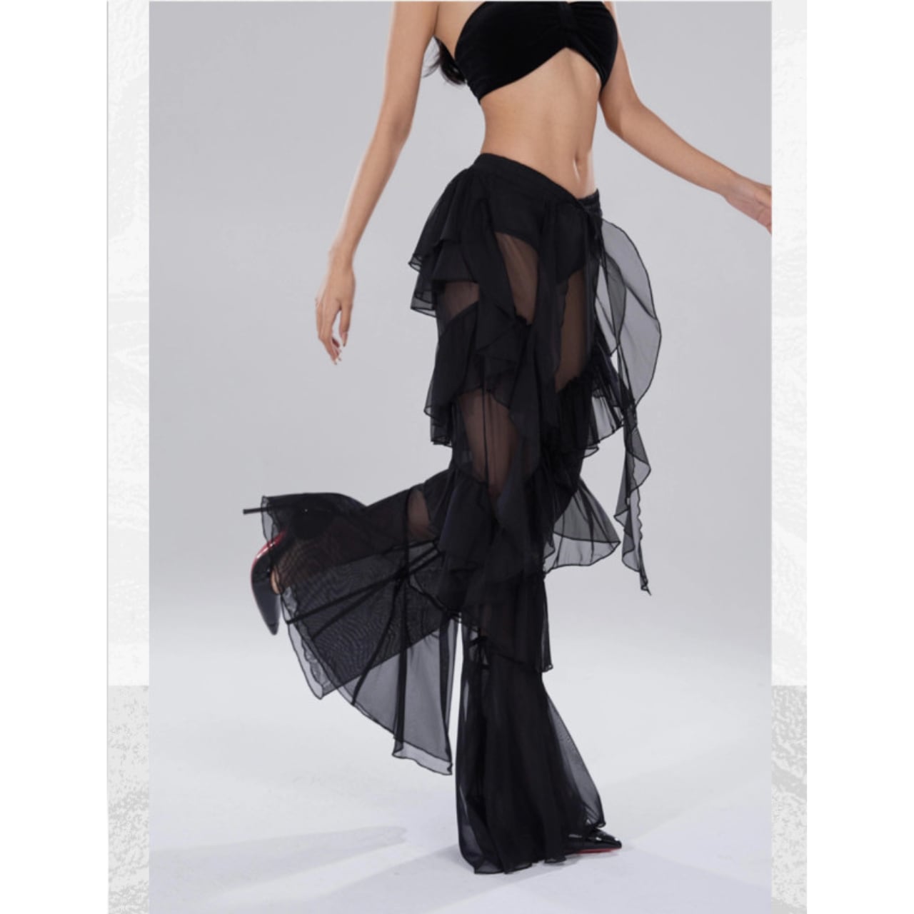 デザインフリルベルボトムシースルーパンツ 2色 S00490