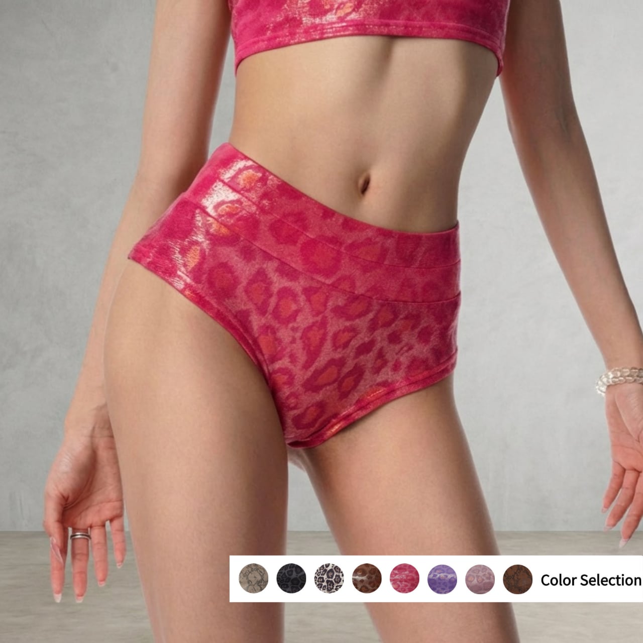 アニマル柄が目を引くヒップハンガータイプのスポーツショーツです。
