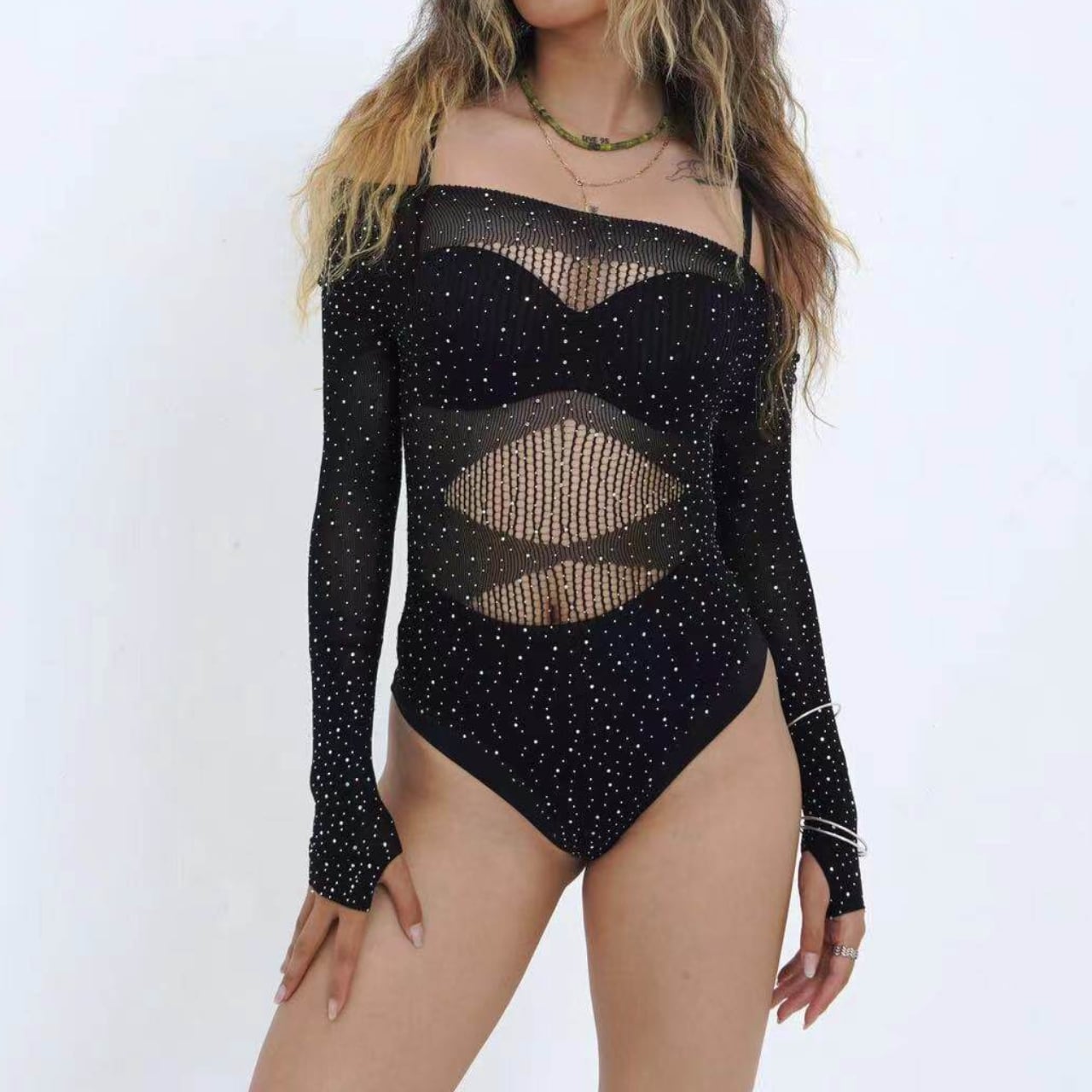 長袖メッシュシアーラメレオタード 3色 S00527